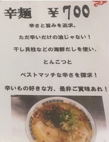 最近のメニューには載っていないのですが、辛麺が新メニューに追加された時のものを見つけました。⇩