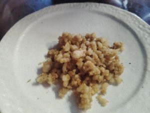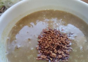 もしくは、厨房側のカウンターに「ラード作った後の残りカス」っていうのがボールに入れてセルフで取れるようになってますので、それを小皿に分けて取ってくればいいです。